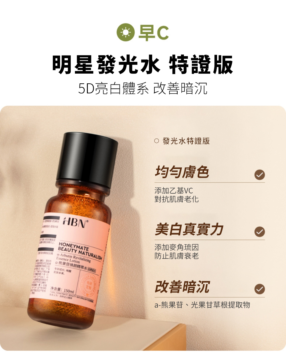 HBN α 熊果苷亮白水乳雙星禮盒 特證版發光水 150ml + 原白乳 90ml 1套