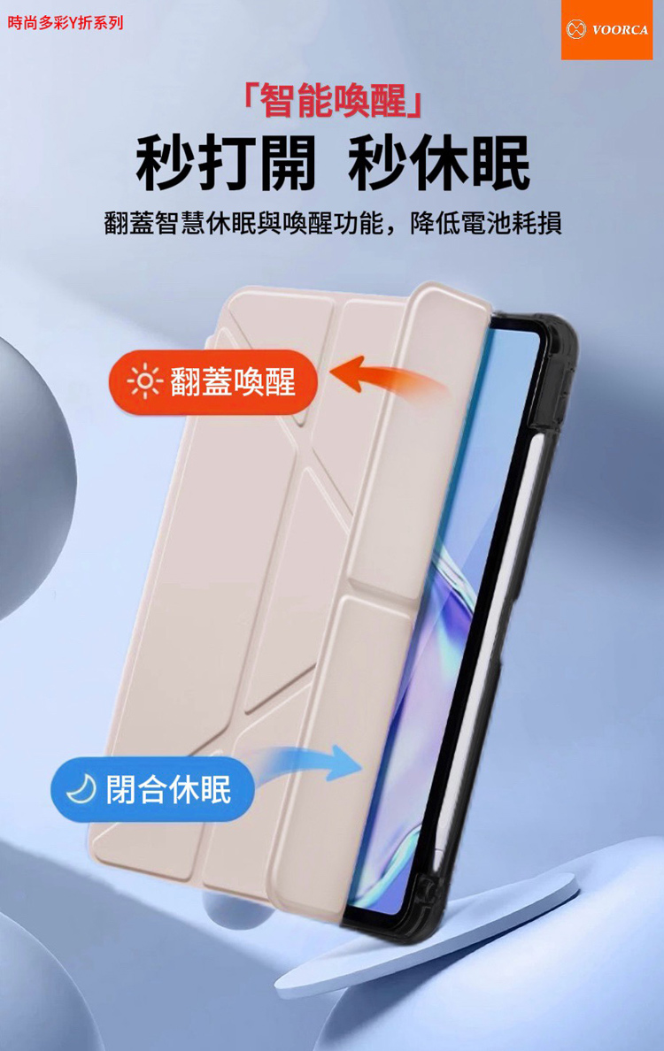 VOORCA iPad 5/6/7/8/9 9.7吋 時尚都會 Y折磁吸帶筆槽薄型保護套-深藍
