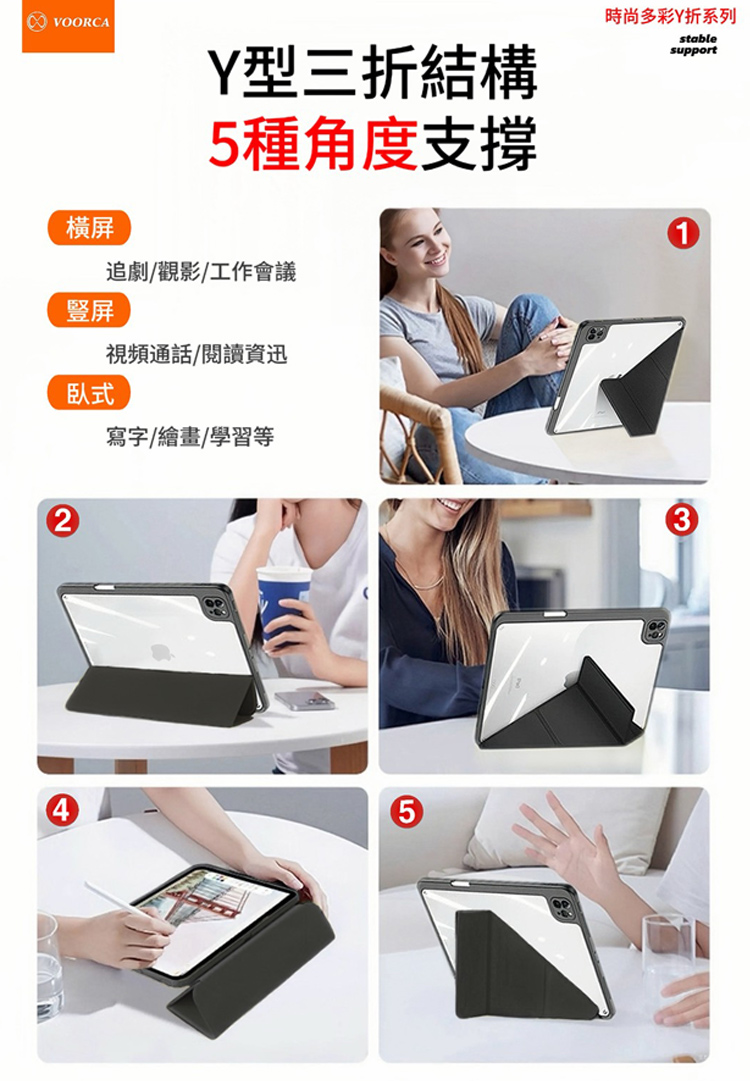【適配2025最新】iPad Air/Pro Facet全方位支架透明保護套-筆槽