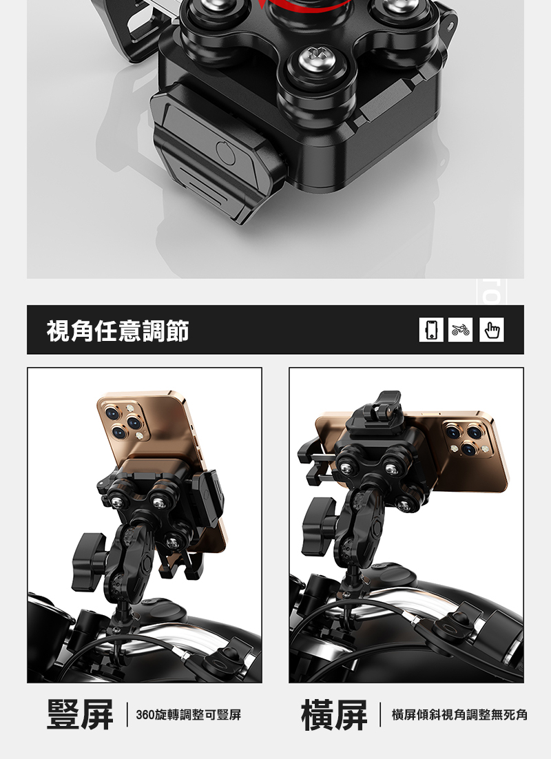 X型可充電機車強力手機架 黑色 ZF472
