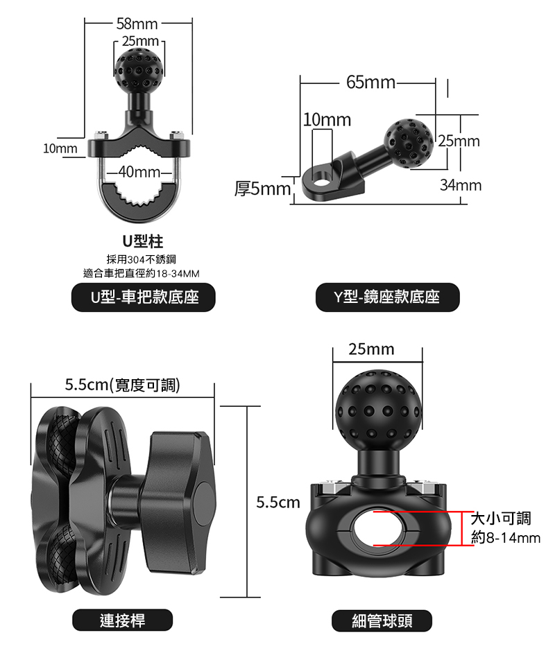 機車手機支架配件 五匹OSOPRO可用 菱形球頭 球體連桿夾 夾具 歪嘴頭 U型把手 後視鏡球頭 固定底座 手機架零件