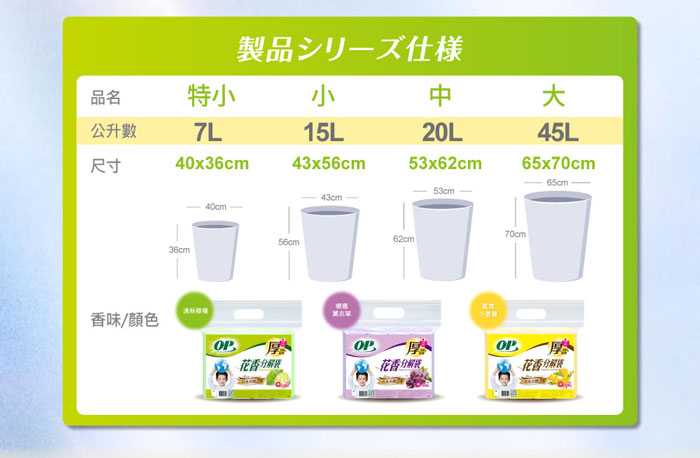 【蝦皮直營】OP 花香垃圾袋 清潔袋 小/中/大可選 圓底 抗菌 驅蟲 可分解 環保