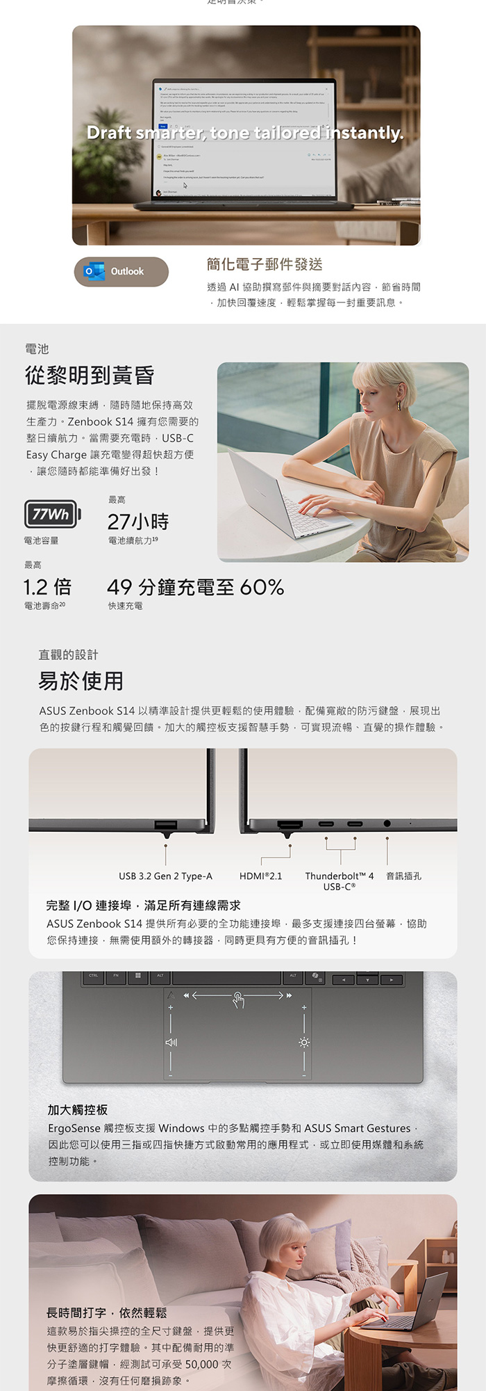 ASUS Zenbook S 14 UX5406AA-0042G386H(CU9-386H/32G/4TB SSD/W11/OLED/14)特仕