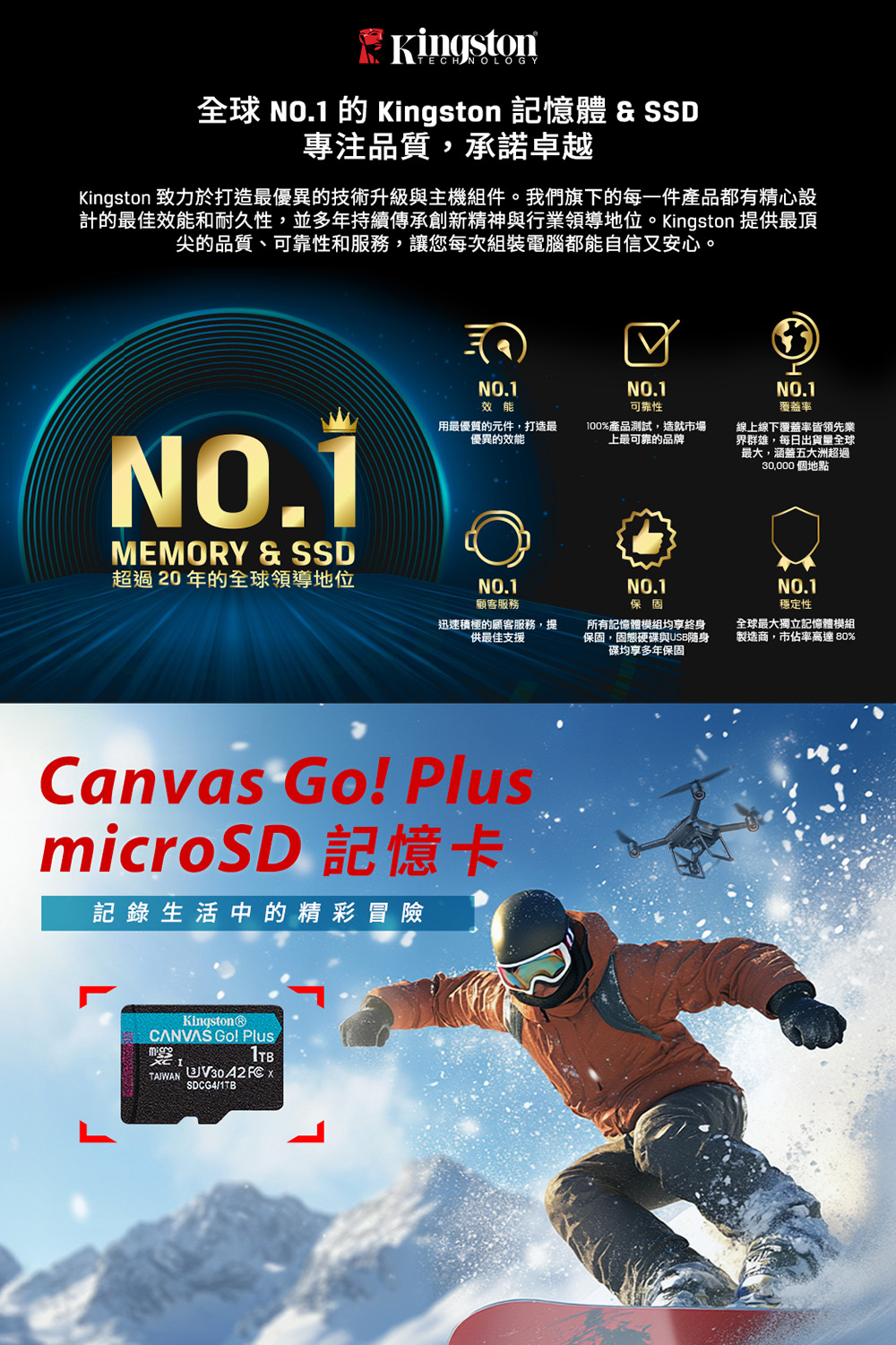 Kingston 金士頓Canvas Go Plus 200MB/s 64GB MicroSD 記憶卡 (SDCG4/64GB)
