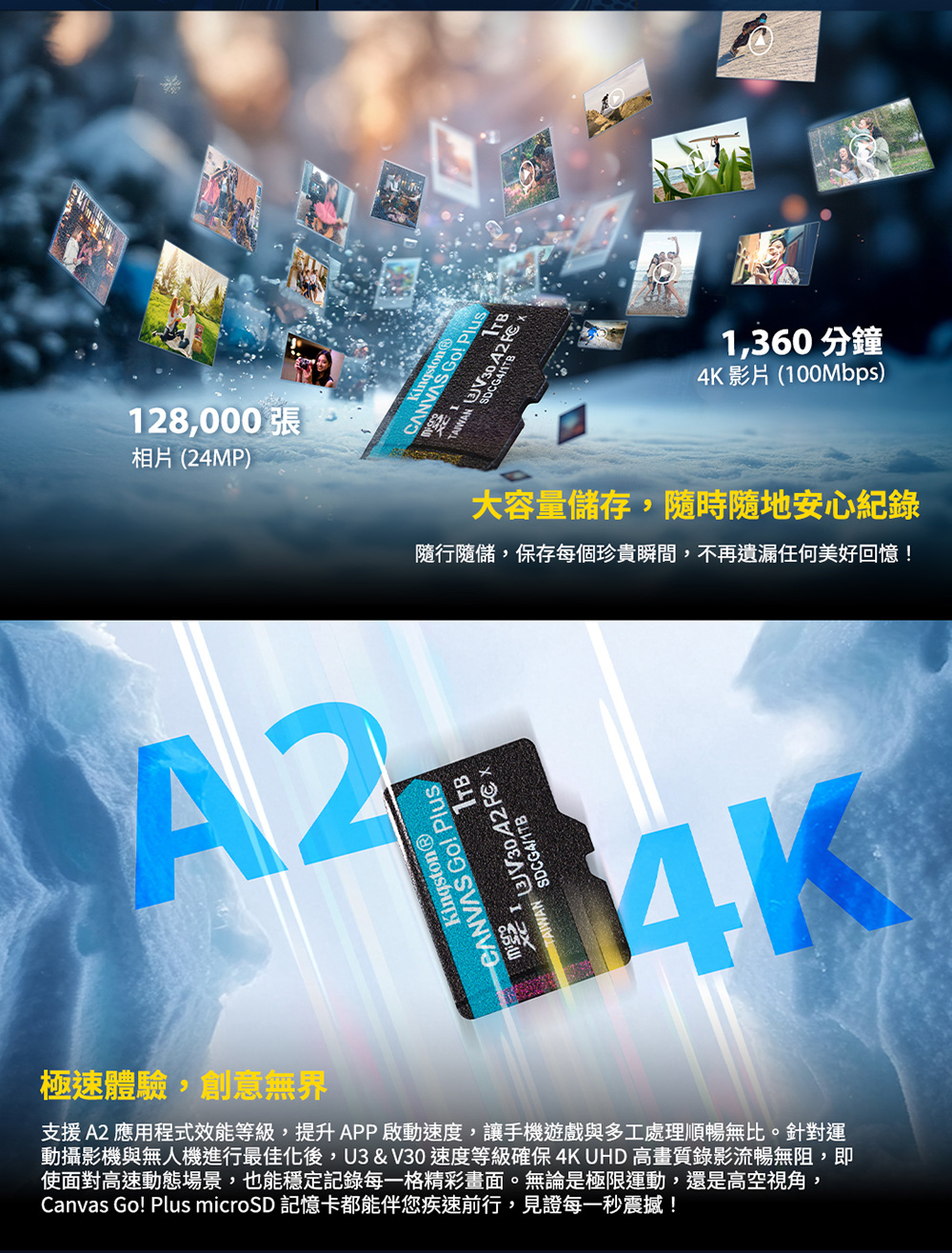 Kingston 金士頓 1TB microSDXC TF U3 V30 A1 記憶卡 (SDCS3/1TB)