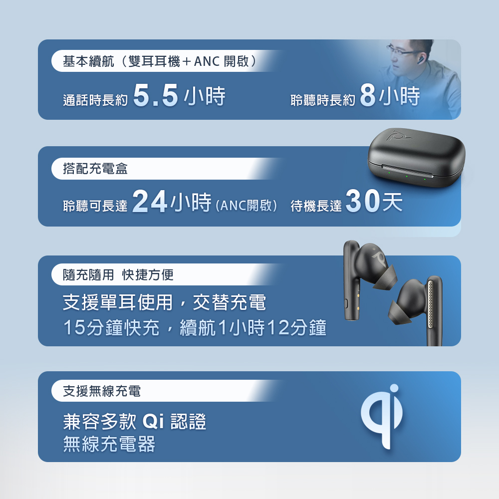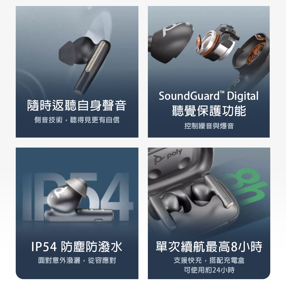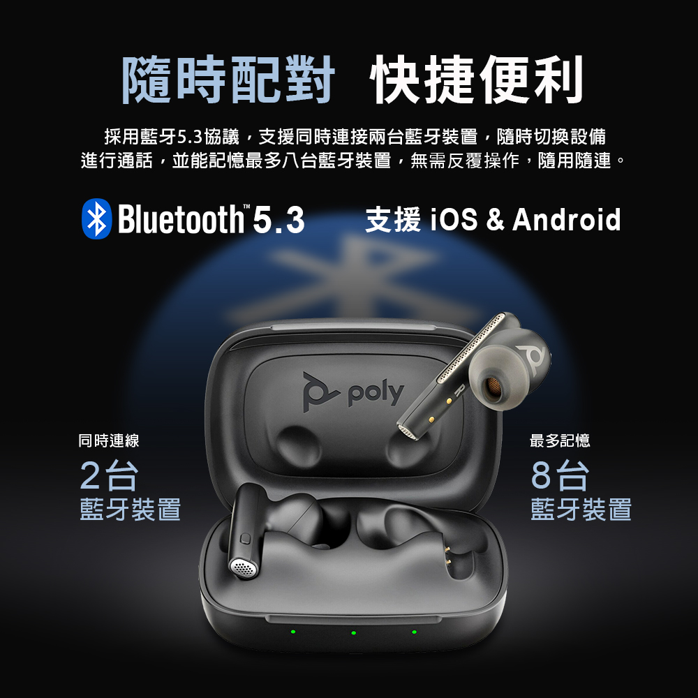 HP 惠普【Poly】Voyager Free 60 真無線藍牙耳機 耳塞式(黑色)