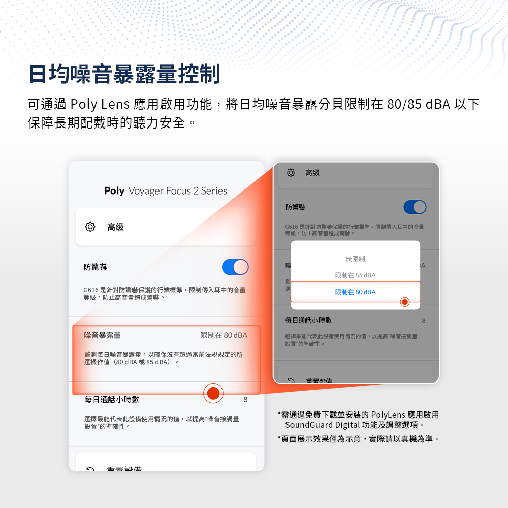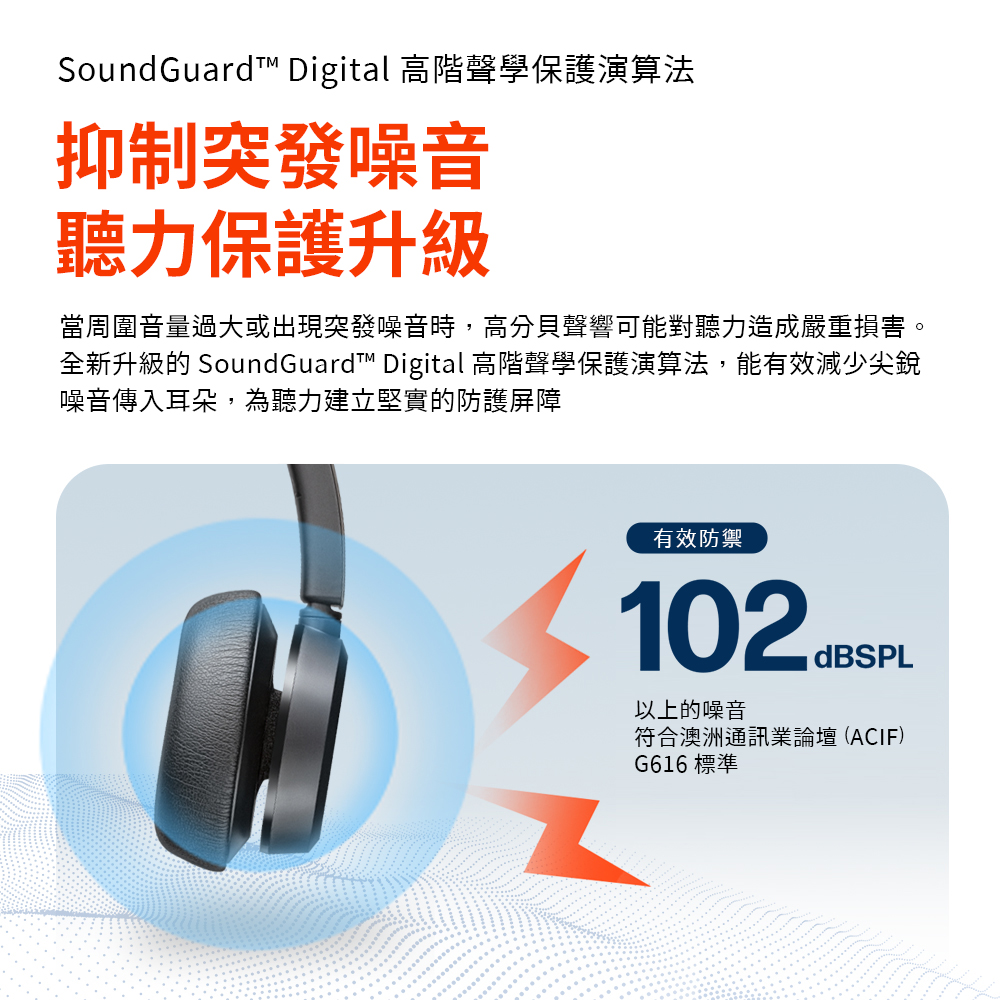 聽力保護:SoundGuard限制音量,G616標準避免102 dBSPL以上的聲音損害