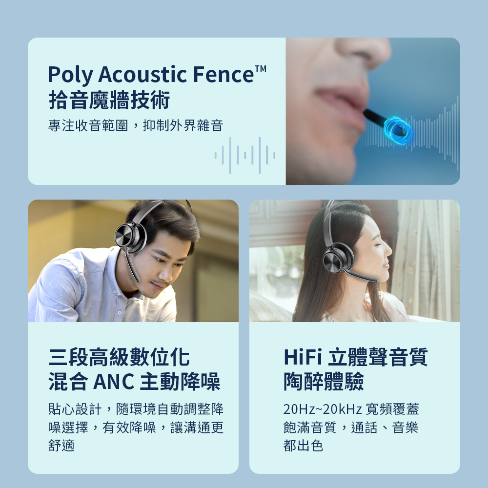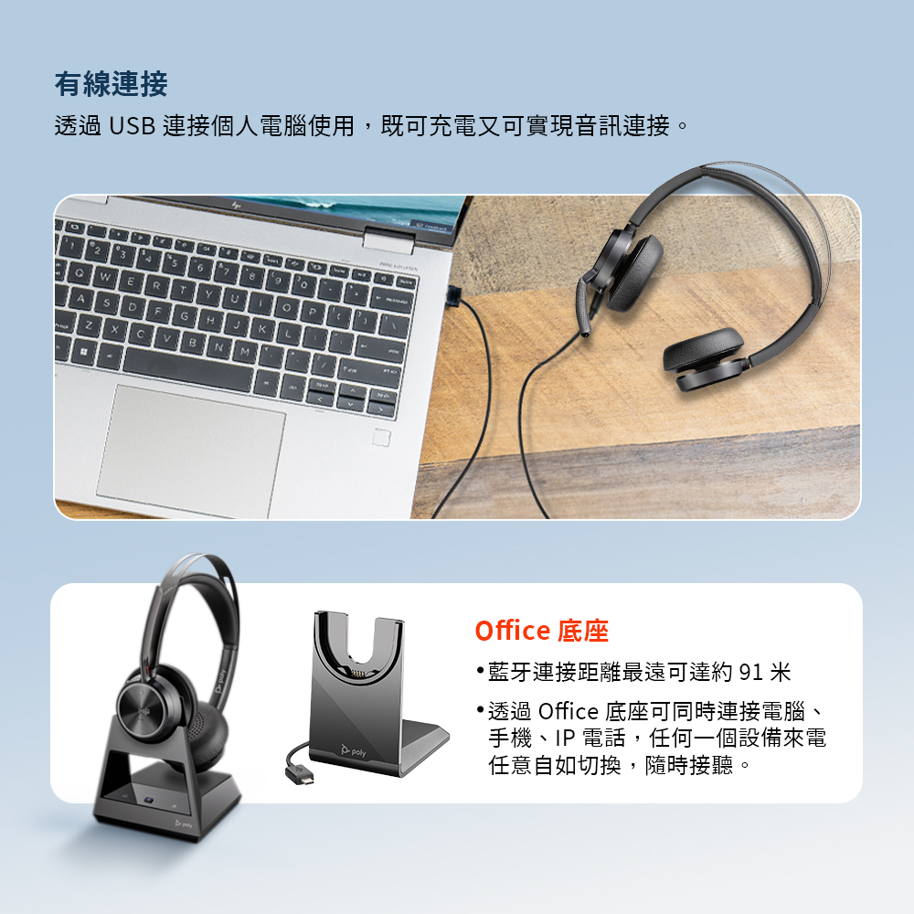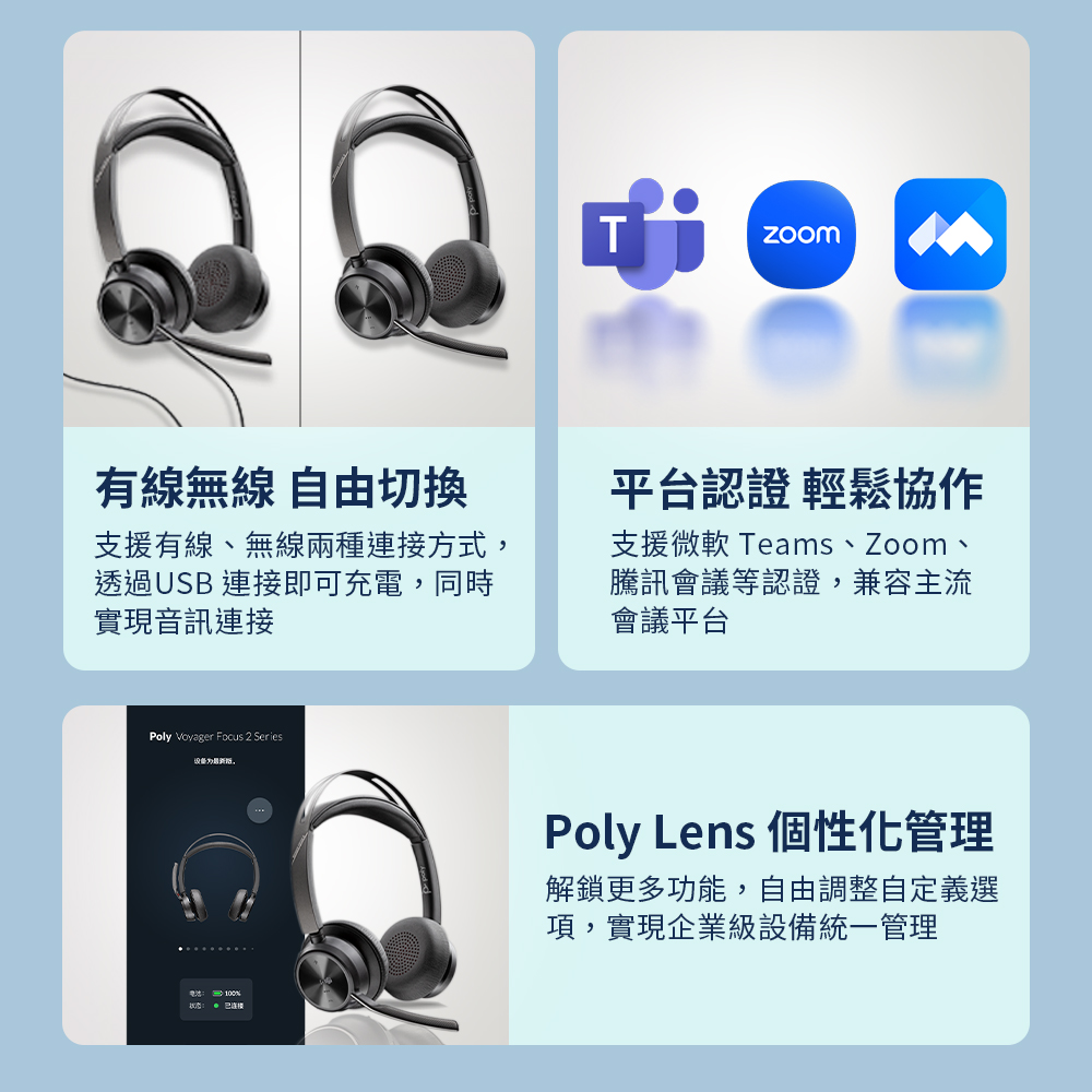 HP 惠普【Poly】Voyager Focus 2 藍牙無線/有線 降噪耳機 耳罩式