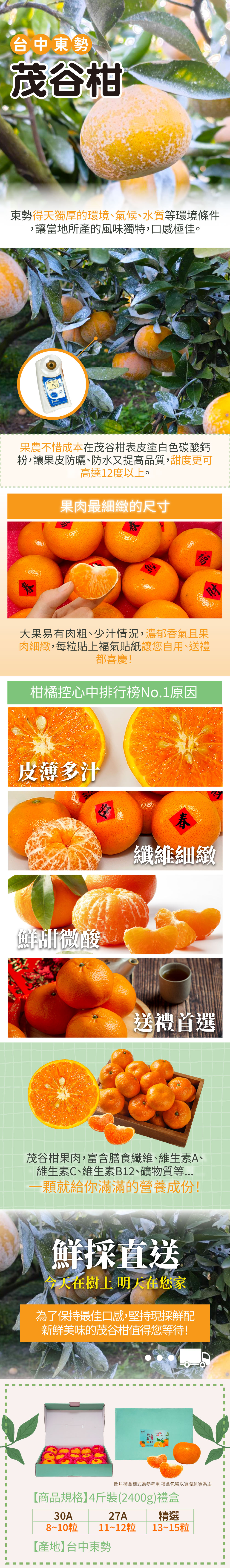 嚴選來自台中東勢的 2025 當季茂谷柑,日夜溫差造就高甜度與濃郁果香,果皮薄、好剝不沾手,果肉細緻多汁、甜中帶微酸。產地新鮮採收直送,無論自用或送禮,都是冬末春初最受歡迎的柑橘首選。