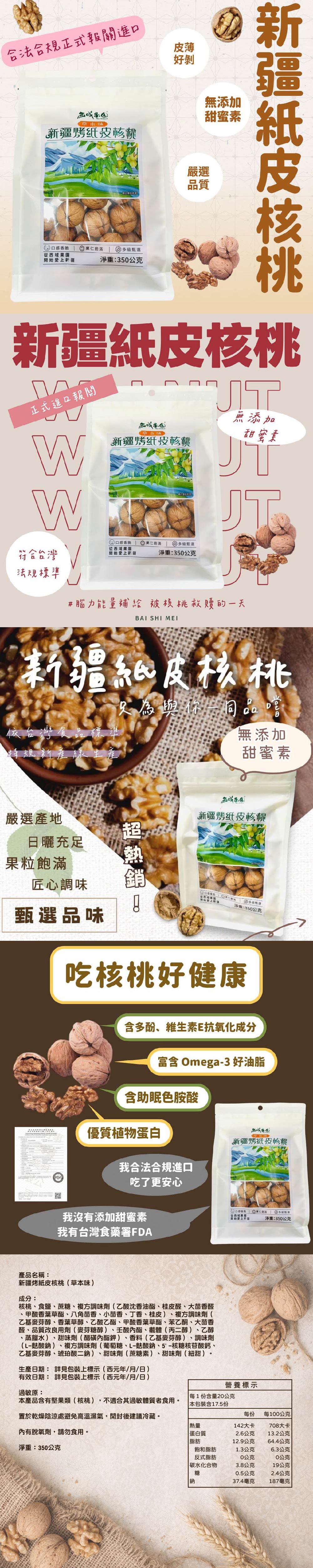 【西域果園】新疆紙皮烤核桃 草本口味x4袋(350g/袋)