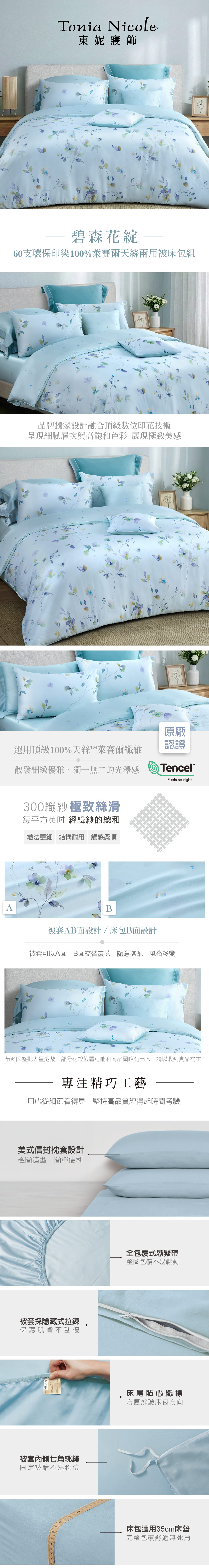 80支天絲新品_東妮寢飾(雙人/加大/特大)環保印染100%天絲™萊賽爾印花被套床包組/花露晨語