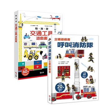 【火熱新品+陸海空合購組】-呼叫消防隊+陸海空交通工具遊戲書-2本