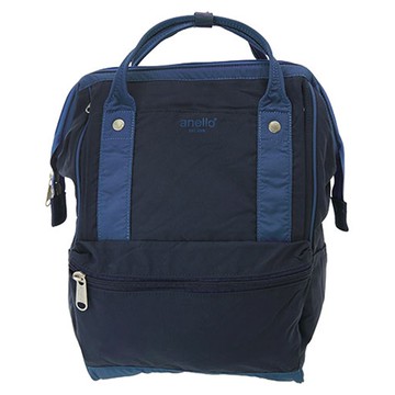 日本 Anello - 棉質尼龍風大開口後背包 10POCKET-mini小尺寸-NV海軍藍