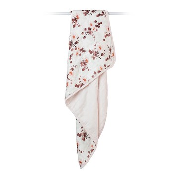 Deux Filles有機棉嬰兒棉絨毯 - 紅藍花卉