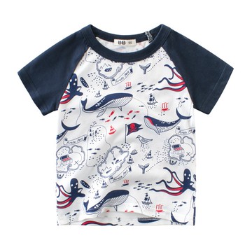 27KIDS - 純棉短袖上衣-鯨魚藏寶-白+藍