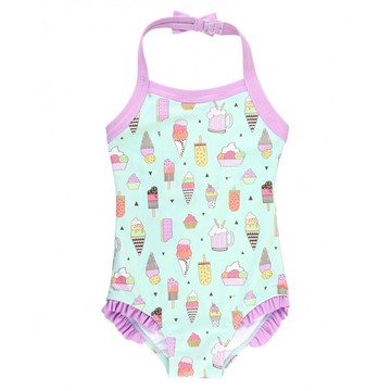 美國 RuffleButts - 小女童UPF 50+防曬無袖連身泳裝-夏日派對