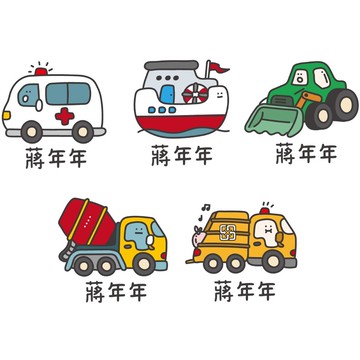 年年.studio - 姓名貼紙-圓形-交通工具 (3x3cm)-80張入