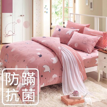 鴻宇 HongYew - 雙人兩用被床包組 防蹣抗菌100%美國棉-萌萌兔-粉