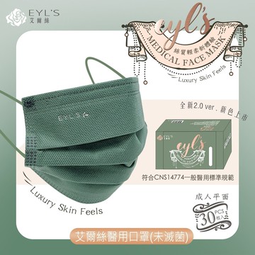 EYL'S 艾爾絲 - 醫用成人平面滿版口罩(灰綠)/30入/雙鋼印/台灣製-平面滿版-灰綠 (175mmx95mm)-30入/盒(...