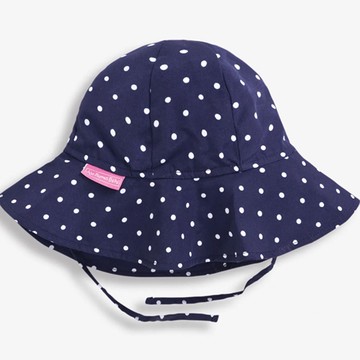 英國 JoJo Maman BeBe - 嬰幼兒/兒童UPF50+防曬護頸遮陽帽-藍底白點