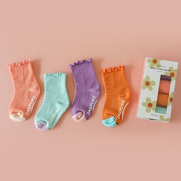 韓國 Daily Like - 兒童襪子(荷葉中筒襪)4入組-2