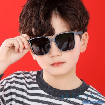 ALEGANT - 童樂時尚海豹灰兒童專用輕量矽膠彈性太陽眼鏡/UV400方框偏光墨鏡