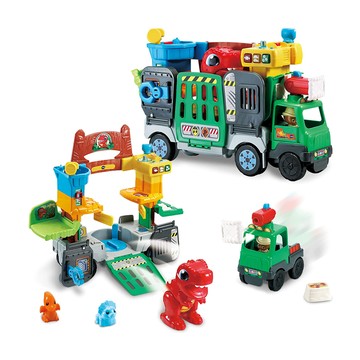 乘坐這台可通往恐龍樂園的運輸卡車進行冒險。有許多小手可以探索的功能。3種學習模式和一個魔法互動智慧感應點。超過100首的伴唱歌曲、旋律和有趣的短語。有6個不同的區域激發想像力
