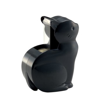 日本文具 NICHIBAN - 日本製 繽紛安全膠帶切割台(含透明膠帶*1個)-貓咪-黑-膠帶規格(15mm適用)