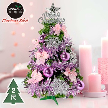 MODACore 摩達客 - 台灣製耶誕-2尺/2呎(60cm)特仕幸福型裝飾綠色聖誕樹 (燦爛粉紅銀系全套飾品)超值組不...