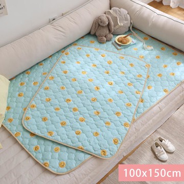 韓國 Prielle - 純棉防水墊-滿滿微笑臉-湖藍 (100*150cm)