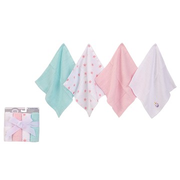 美國 Luvable Friends - 甜蜜寶貝100%純棉多功能嬰幼兒小方巾/洗澡巾/擦嘴巾4入組_25*25cm-粉色星星