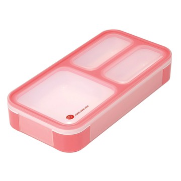 耐高溫可微波使用,帶便當好方便。適用女性與兒童,深3.5cm薄型好攜帶。三格空間分隔,食物分類不相互混雜。扣蓋、密封條設計,食物湯汁不易外漏。餐格四角圓滑,舀飯或清潔無死角