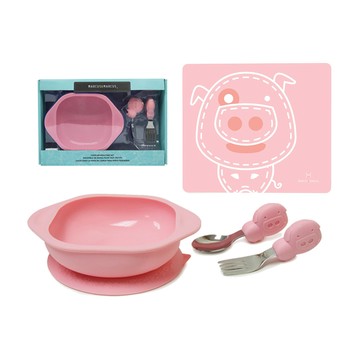 MARCUS&MARCUS - 動物樂園寶寶握握學習禮盒餐墊組(握握禮盒+餐墊)-粉紅豬