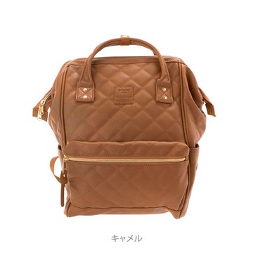 日本 Anello - 格紋仿皮大開口後背包-CA駝色