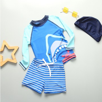 男寶防曬長袖泳裝套裝(附帽子)-大嘴鯊魚-藍色