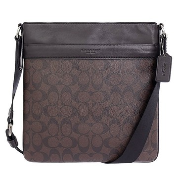COACH - 滿版LOGO拼接皮革斜背包 (咖啡)