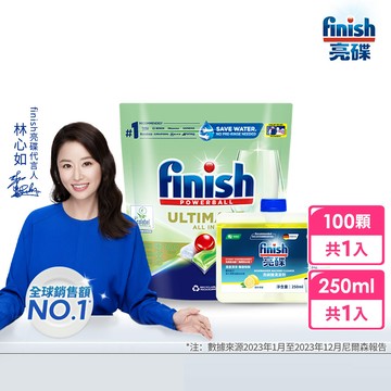 finish 亮碟 - 洗碗機零添加洗碗凝珠100顆+機體清潔劑(檸檬)250ml