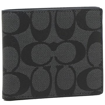 COACH - 滿版LOGO皮革六卡短夾 (黑灰)