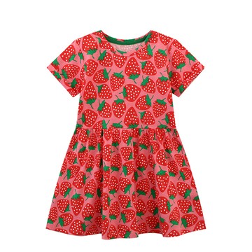 Jumping meters - 棉質圓領短袖洋裝-滿滿草莓-粉色
