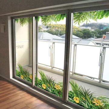 日本千趣會 - 日本製 99%抗UV綠意光影窗貼(靜電式)-熱帶風 (90×90cm)
