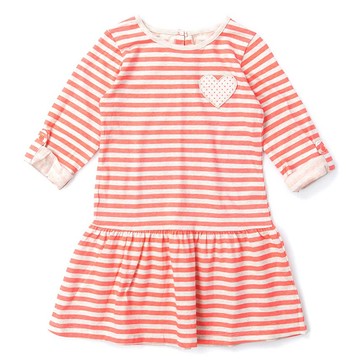 美國 Carter's - 愛心口袋橫條紋抽繩收腰長袖連身裙-桃白