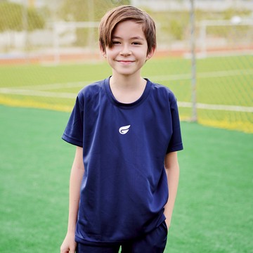 GIAT - 兒童盾形速乾排汗衣-短袖款-深藍