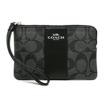 COACH - 拼接皮革L型拉鍊手拿包 (黑)