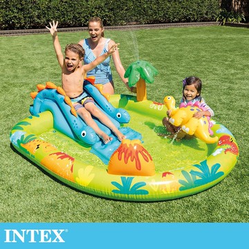 INTEX美國知名大廠,原廠公司貨。夏日戲水趣,在家也能盡情玩水,安全、衛生。可愛恐龍造型,噴水設計及小滑水道。可當戲水池或遊戲池/玩砂池,附戲水玩具。2歲+以上適用,附戲水小玩具