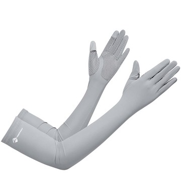 UPF50+成人冰絲涼感防曬袖套-指尖開口款-灰色 (F(約52x10CM))