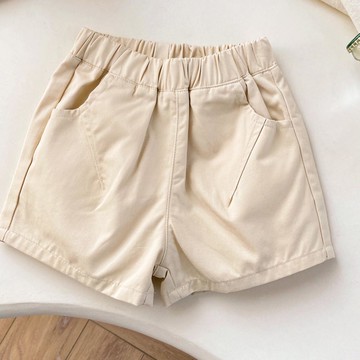 腰鬆緊休閒百搭短褲-杏色