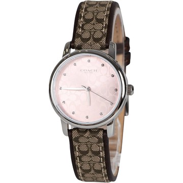 COACH - 滿版logo織布錶帶腕錶 (卡其粉)