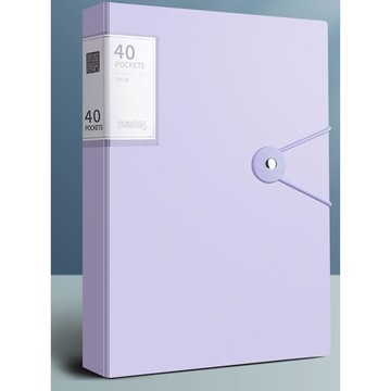 豎式插頁,A4資料輕鬆裝。搭扣設計不怕掉出。加厚內頁,抗皺耐磨。大容量!1頁可放20張A4紙。多種規格可選擇!超能裝