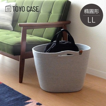 日本TOYO CASE - 北歐編織風橢圓形置物收納籃(附把手)-LL-淺灰