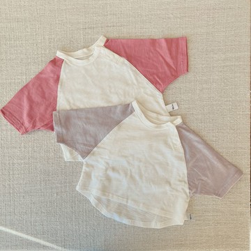 YOUrs - 竹節棉斜袖上衣2件組-珊瑚粉+淡紫色